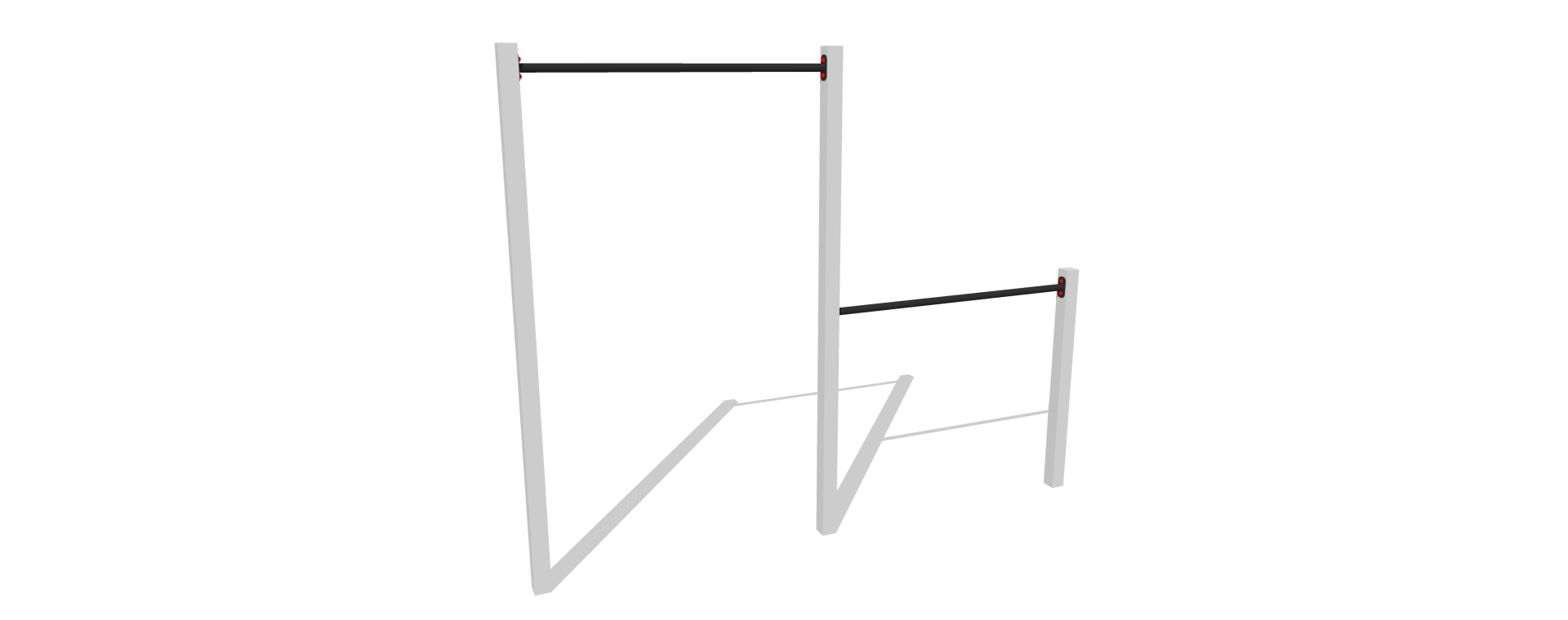 Gymnastický set určený pro děti, teenagery i dospělé, který zahrnuje gymnastické hrazdy v různých výškách. Konstrukce je vyrobena z pozinkované a práškově lakované oceli, což zajišťuje dlouhou životnost a odolnost vůči povětrnostním podmínkám. Trénink na tomto setu efektivně posiluje svaly hrudníku, zad, paží, ramen a břicha a zároveň zlepšuje rovnováhu a motorickou koordinaci.