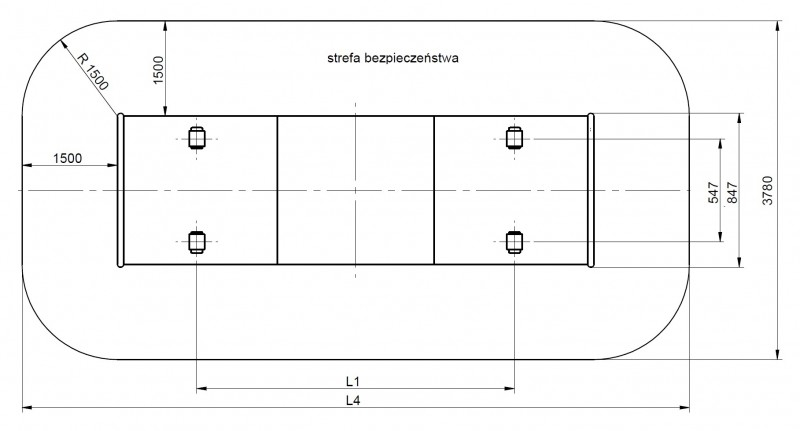 Tunelová trouba ve tvaru kruhové trubky je určena pro instalaci uvnitř přírodních nebo tvarovaných náspů. Délka skluzu 2,50 m, průměr 0,85 m. Vjezd a výjezd jsou kolmo k ose tunelu. Je kompletně vyrobena z matné nerezové oceli.