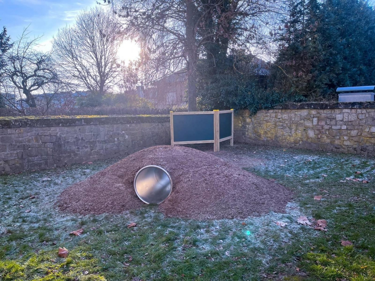 Tunelová trouba ve tvaru kruhové trubky je určena pro instalaci uvnitř přírodních nebo tvarovaných náspů. Délka skluzu 2,50 m, průměr 0,85 m. Vstupní a výstupní otvor je zříznut pod úhlem 30° k ose tunelu. Je kompletně vyrobena z matné nerezové oceli.