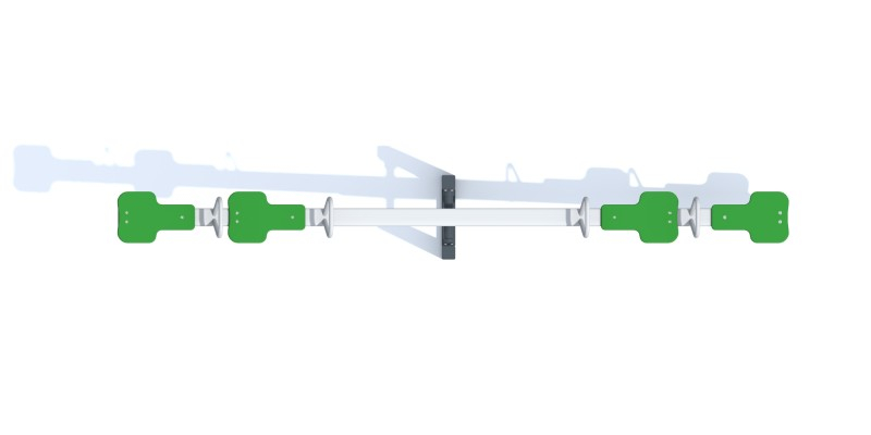 Certifikát potvrzující shodu s normou EN 1176 Zařízení hřiště se skládá z 1x hlavní sloupek 1x rameno 4x kulatá madla 4x protiskluzová sedadla Materiály Konstrukce vyrobená z pozinkované oceli odolné vůči povětrnostním podmínkám a intenzivnímu používání. Protiskluzová sedadla vyrobená z HDPE.