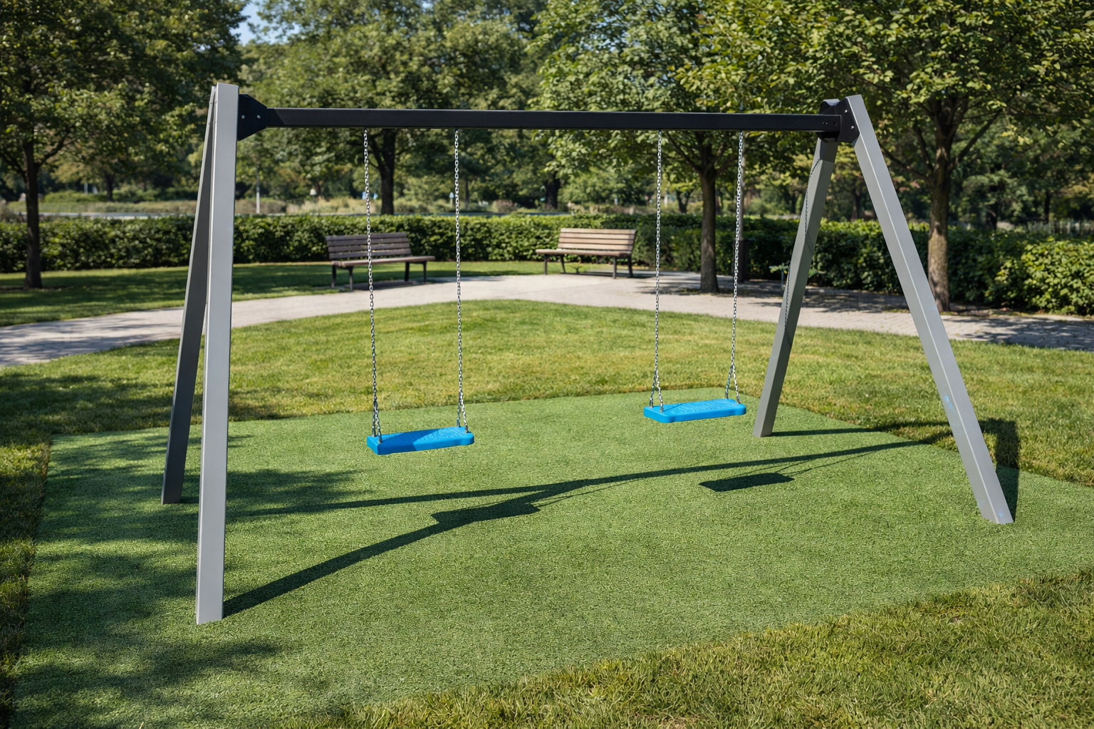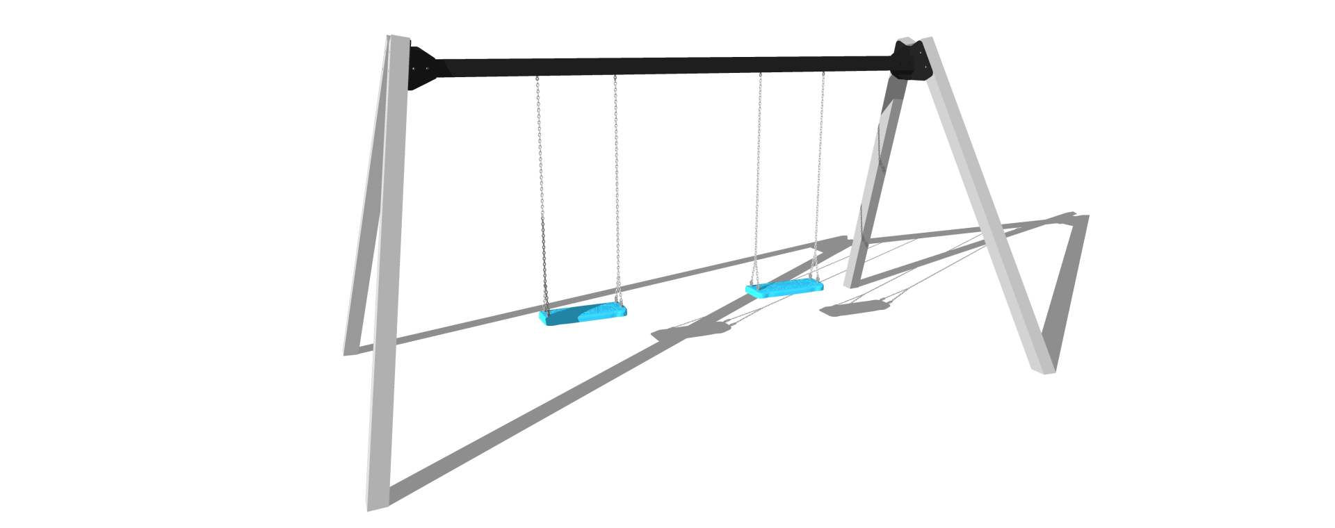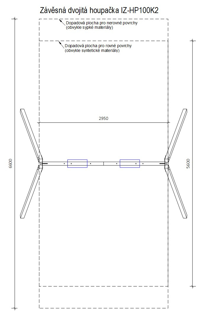 Konstrukci houpačky tvoří ocelové profily s důrazem na pevnost, stabilitu a dlouhou životnost. Šikmé podpěrné sloupy zajišťují stabilitu celé sestavy a vrchní nosník slouží k bezpečnému uchycení závěsných prvků. Povrchová úprava chrání konstrukci proti povětrnostním vlivům i běžnému opotřebení. Houpačku lze osadit různými typy sedáků dle požadavku.