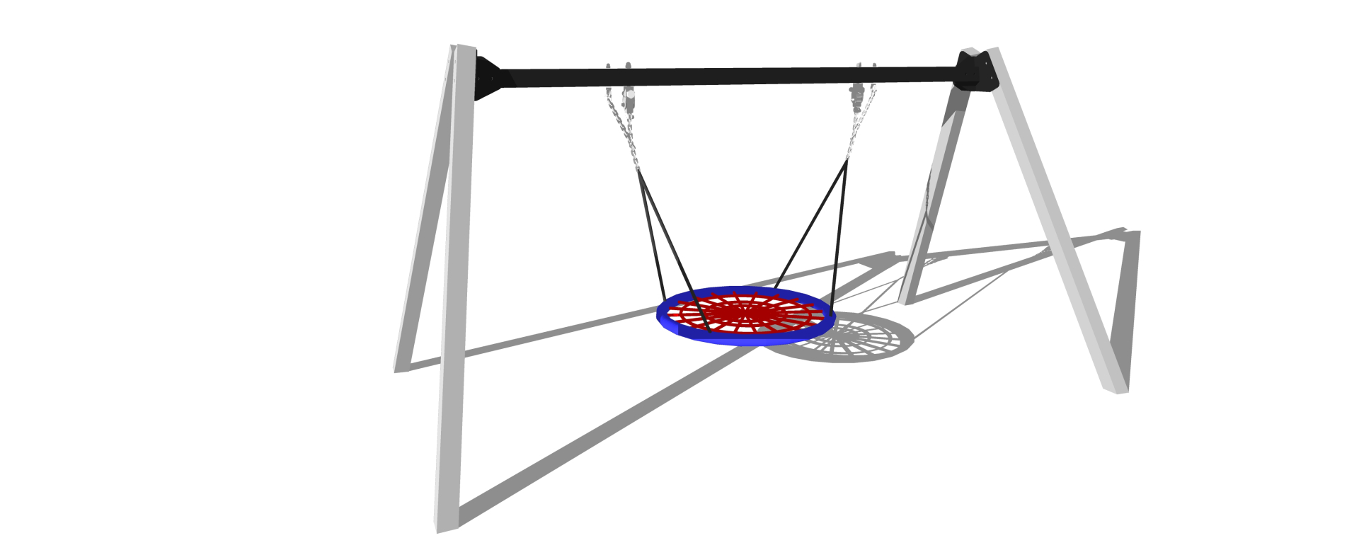 Konstrukci houpačky tvoří ocelové profily s důrazem na pevnost, stabilitu a dlouhou životnost. Šikmé podpěrné sloupy zajišťují stabilitu celé sestavy a vrchní nosník slouží k bezpečnému uchycení závěsných prvků. Povrchová úprava chrání konstrukci proti povětrnostním vlivům i běžnému opotřebení. Houpačku lze osadit různými typy sedáků dle požadavku.